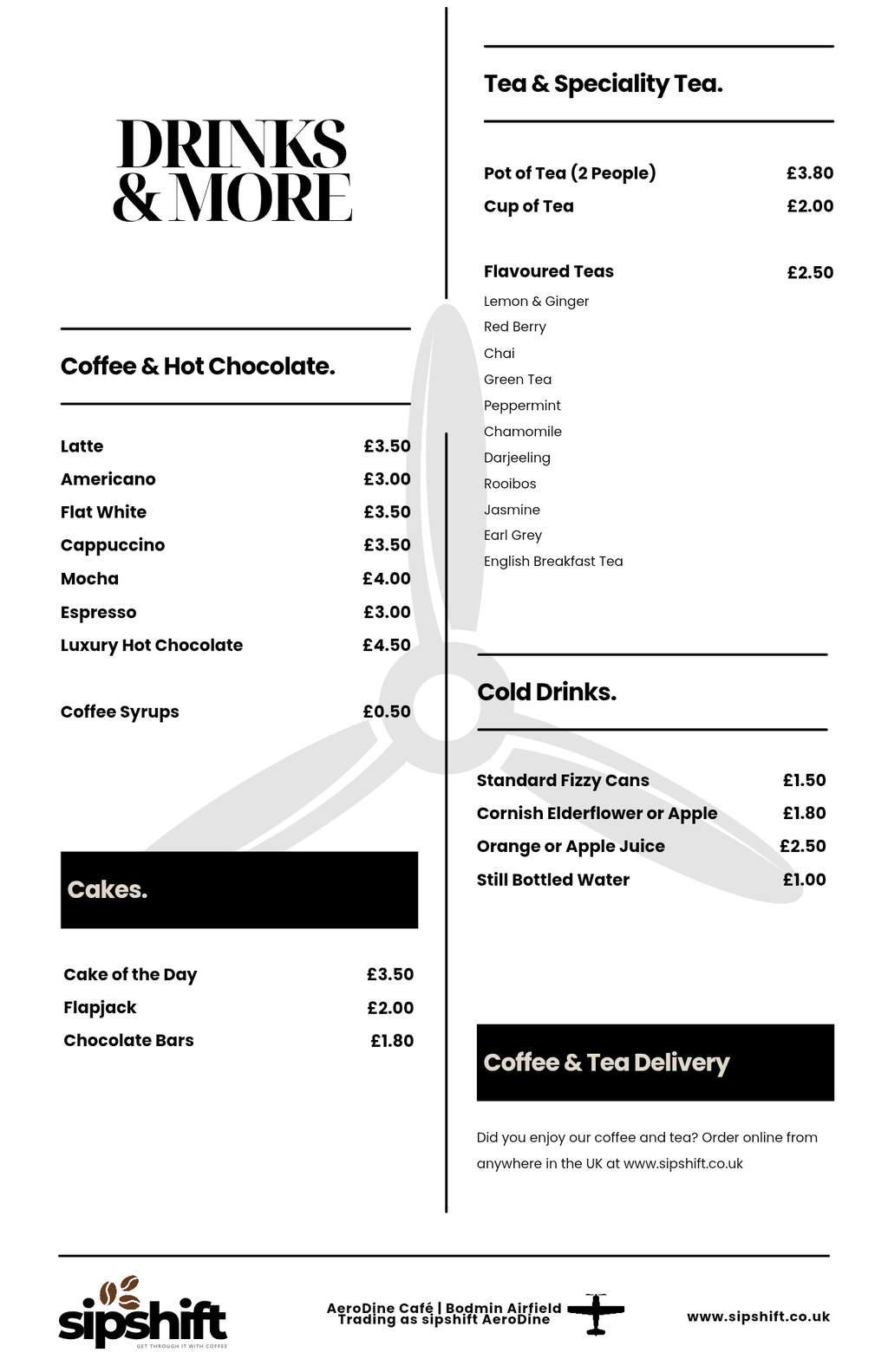 Whether it’s a quick takeaway or a long, lazy lunch watching planes take off, AeroDine coffee keeps Cornwall moving.